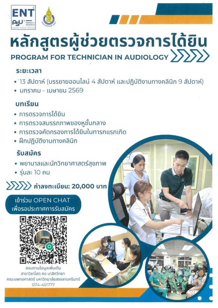 “หลักสูตรผู้ช่วยตรวจการได้ยิน : Program for Technician in Audiology”