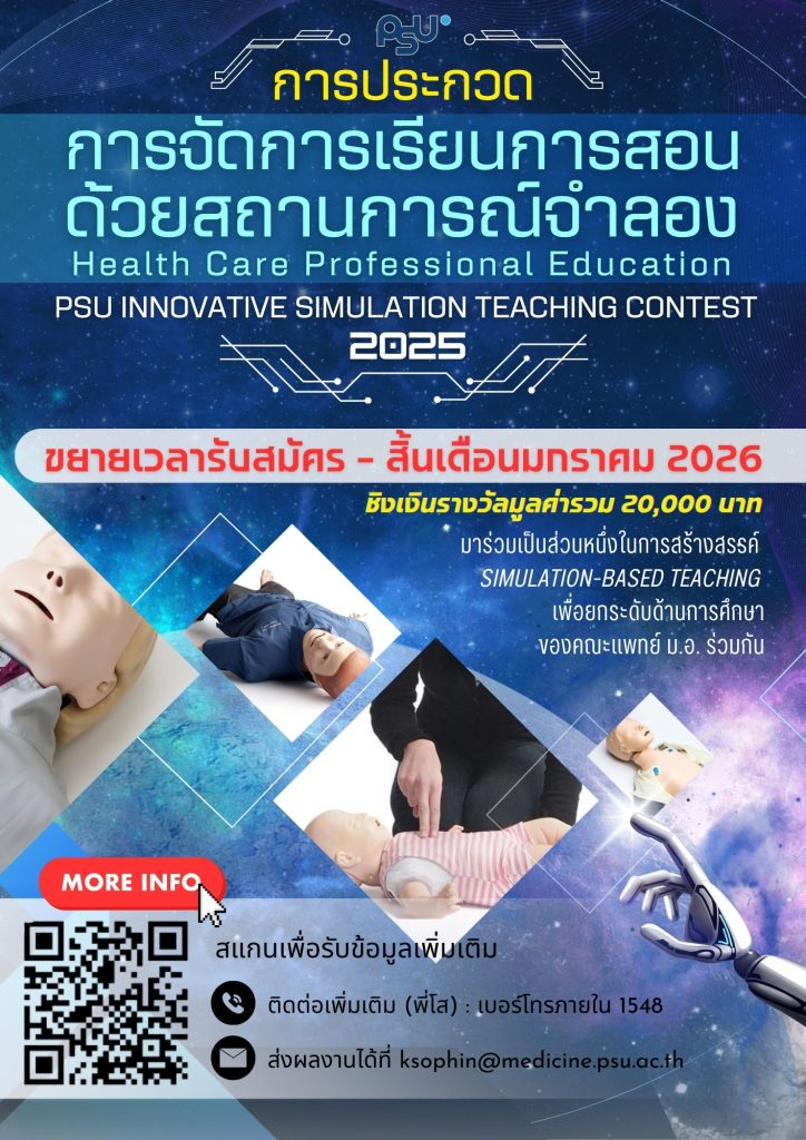 ขยายเวลารับสมัคร!! การประกวดการจัดการเรียนการสอนด้วยสถานการณ์จำลอง Health Care Professional Education: PSU Innovative Simulation Teaching Contest 2025