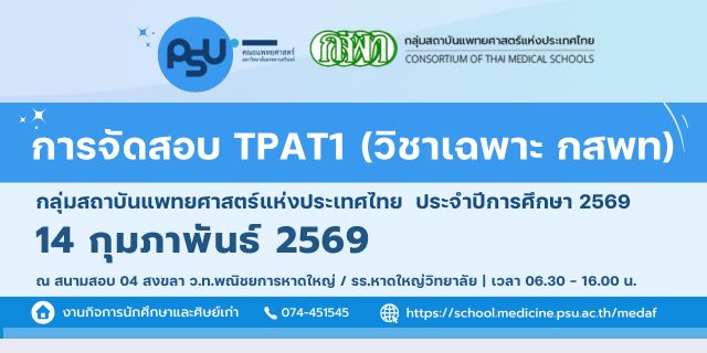 เปิดระบบรับสมัคร วันที่ 3 กุมภาพันธ์ 2569 เวลา 09.00 น. https://link.medicine.psu.ac.th/ZDQZcnGs